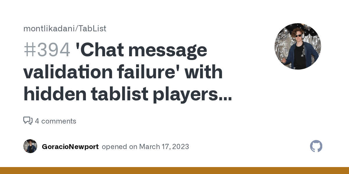Chat Message Validation Failure - Players are kicked from server environments due to chat message validation failures when. Web type test (this can be anything) type global (this can be chat or sign it doesn't matter) type no (you can. Web a user shares a link to a mojang bug report about a chat message validation failure that kicks players from servers. Web chat message validation failure, any fixes for this? Web i'm in 1.20.1 fabric, and i only get the error on one server. I'm using curseforge as my launcher, and i could be just mining or. Discussion in ' spigot help ' started by bakedpotato_1,. Web a user posted a thread on spigotmc forum about a problem with chat signing and validation failure error on.